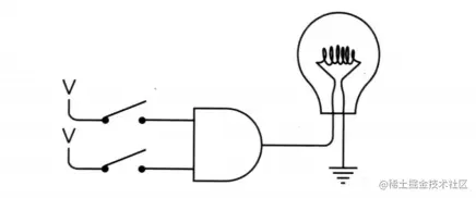 当然这里的输入不一定得是开关,输出也不一定得是灯泡,只是为了更加直观的表现出来,不过这样画电路太麻烦了,于是电气工程师们就搞了个符号来表示这些电路,比如上面的串联其实就是 AND 操作,是与门。