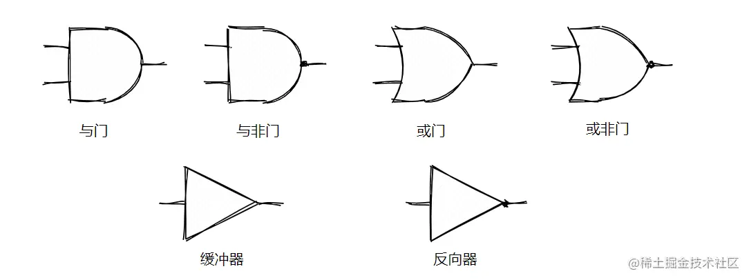 分别通过或门和与非门之后再做与门,出来的结果就是当前和的结果,这个其实就是 XOR 异或门,简化表示就是: