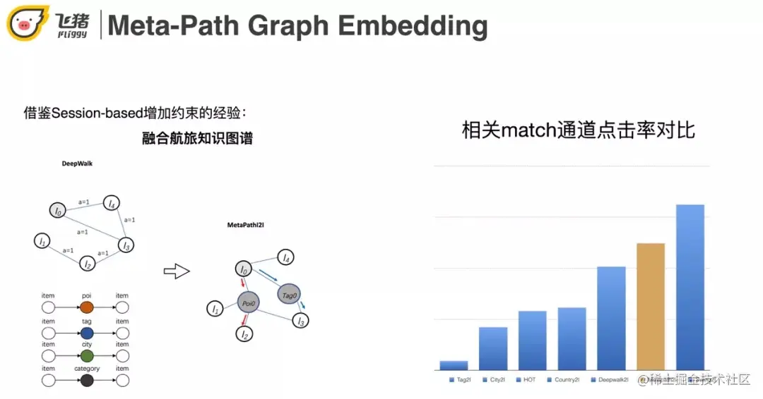 解决Embed相关性低的方式借鉴了session-based召回的经验,将航旅知识图谱融合,构建航旅特定的Meta-Path。效果上看meta-path的效果是比deepwalk更好。
