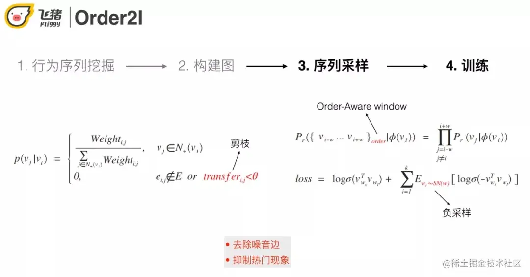 ③ 序列采样过程中会基于转移概率进行剪枝操作,用来抑制噪声和缓解热门问题。