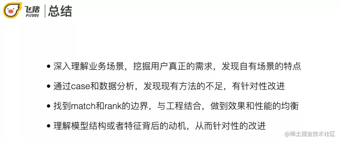 首先要基于业务场景,来发掘用户需求,发现自有场景的特点。接下来通过case和数据分析来发现问题,通过理解模型结构或者特征背后的动机进行针对性的改进。最后在召回和排序之间找到边界,效果和性能之间做好trade-off。