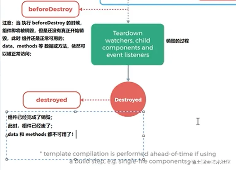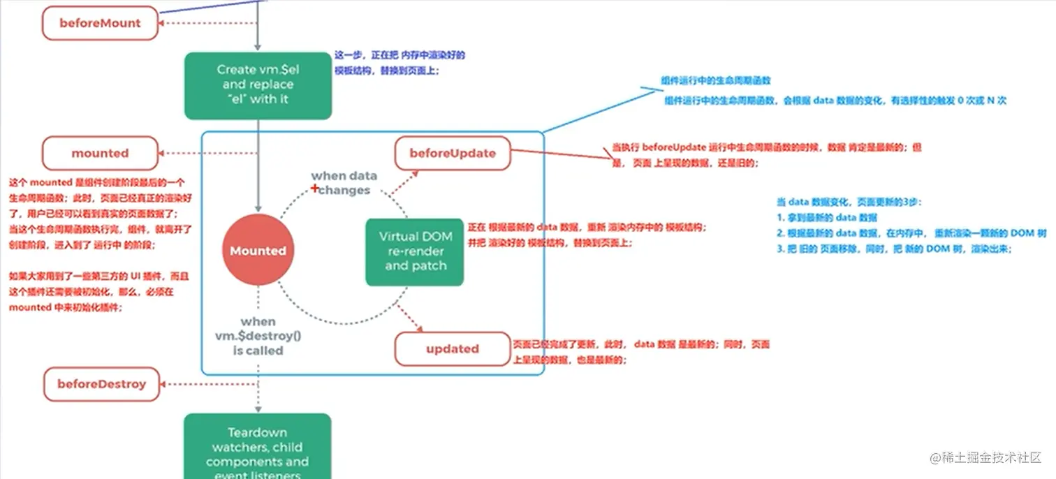 - 组件销毁阶段:也有一个显著的特点,一辈子只执行一次;