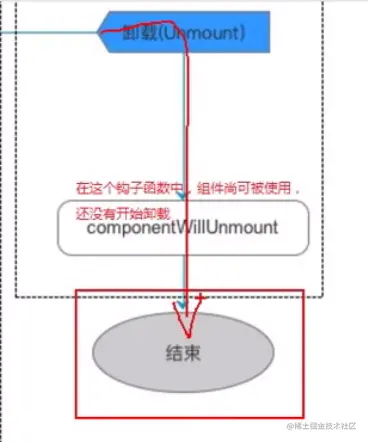componentWillUnmount: 组件将要被卸载,此时组件还可以正常使用;