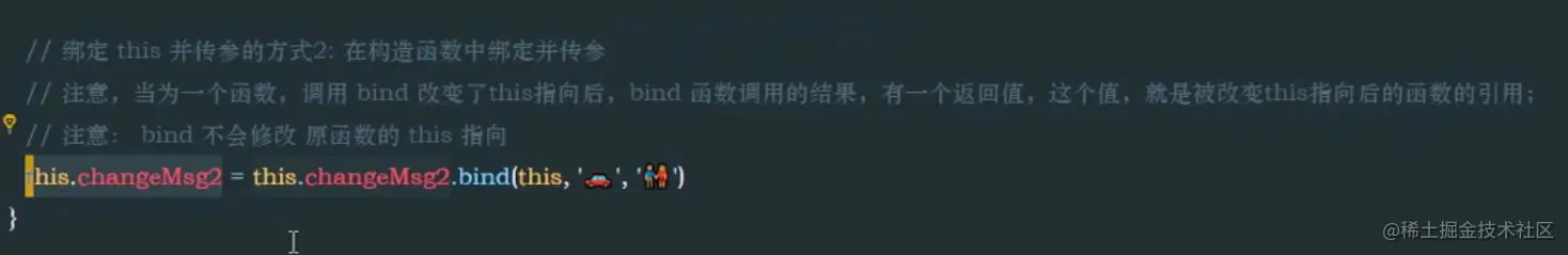 msg: '在构造函数中绑定this并传参:' + arg1 + arg2