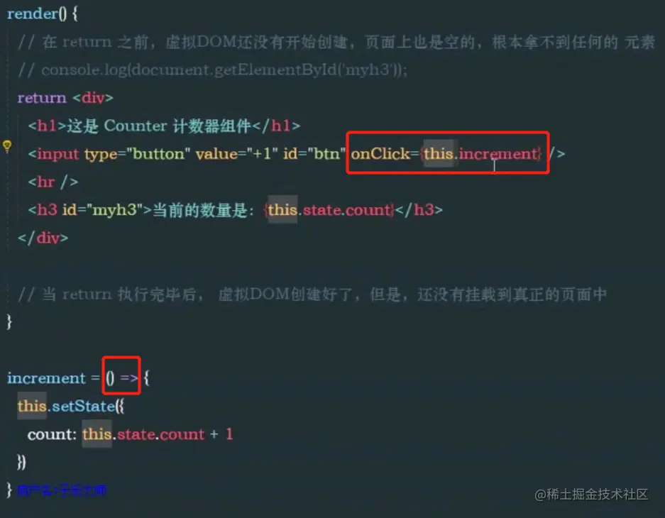 <input type="button" value="用箭头函数绑定this并传参" onClick={() => { this.handleMsg3('👩', '👰') }} />
