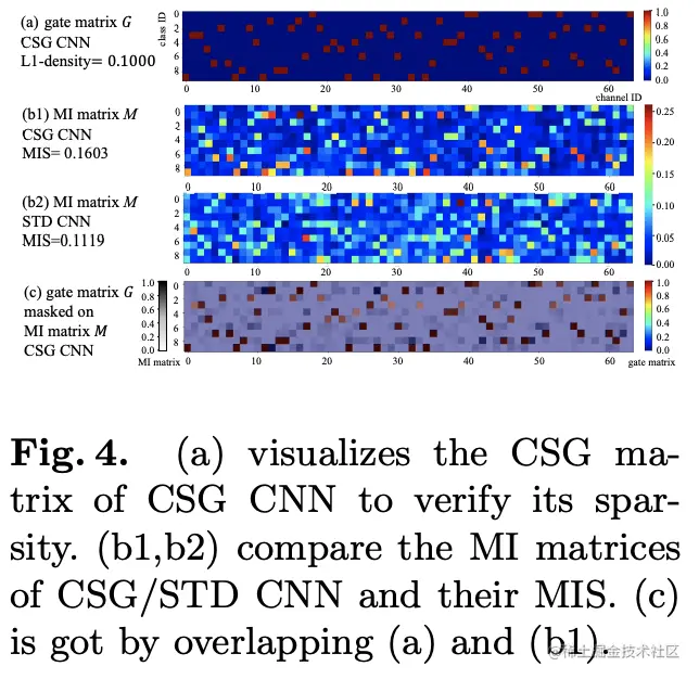 - 图a表明CSG训练能得到稀疏的CSG矩阵,每个卷积核仅对应一个或少量类别。