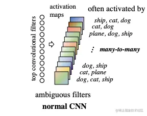卷积神经网络虽然在多个视觉任务中有很好的表现,但可解释性的欠缺导致其在需要人类信任或互动的应用中受到限制,而论文认为类别与卷积核间的多对多关系是造成卷积网络可解释性差的主要原因,称之为filter-class entanglement。如上图所示,卷积网络通常提取包含多个语义概念的混合特征,比如类别、场景和颜色等,去除entanglement能够更好地解释每个卷积核的作用。