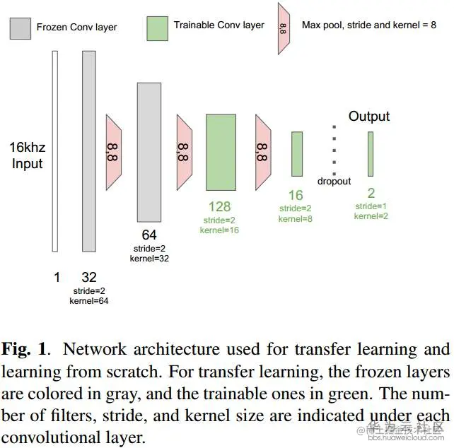 2、迁移学习:5层的soundnet只取前3层作为迁移层,在新数据集中训练时保持着三层不变,其余两层随机初始化,再训练。