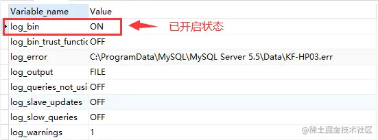 - 如果未开启状态为OFF,需要手动开启,打开my.ini文件,可以通过命令查找my.ini文件位置
