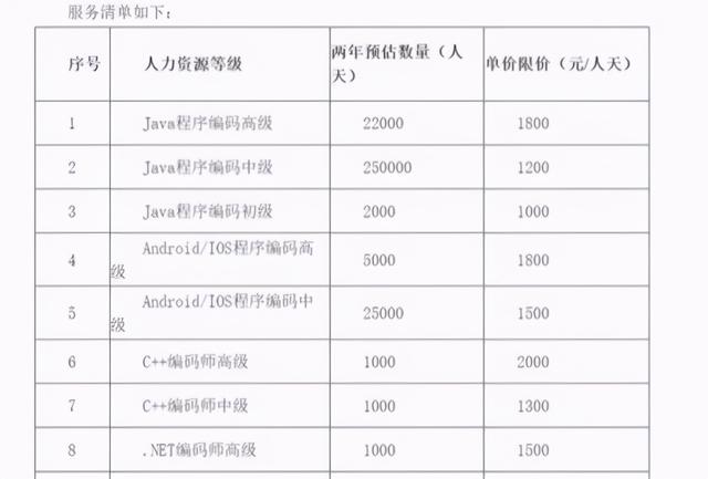 之前在微信招聘的群中,看到一份外包的服务清单。