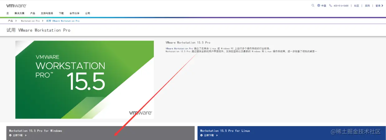 打开下载>免费产品试用版和演示>WorkstationPro查看下载页面.