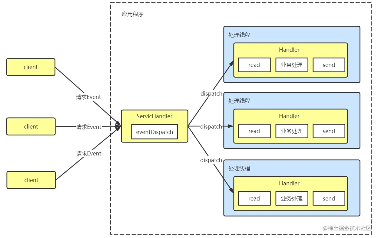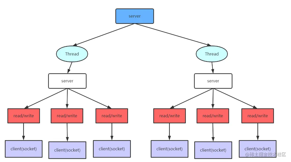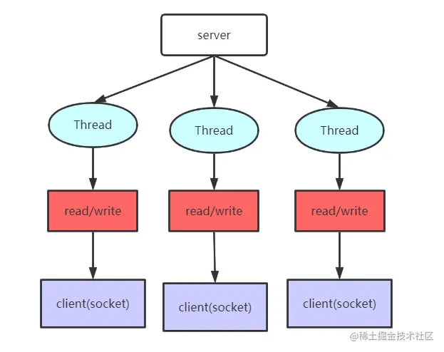- 每次客户端建立一个连接,都会分配一个线程进行处理