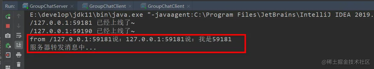 System.out.println("客户端发送的消息:"+message);