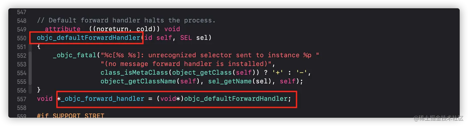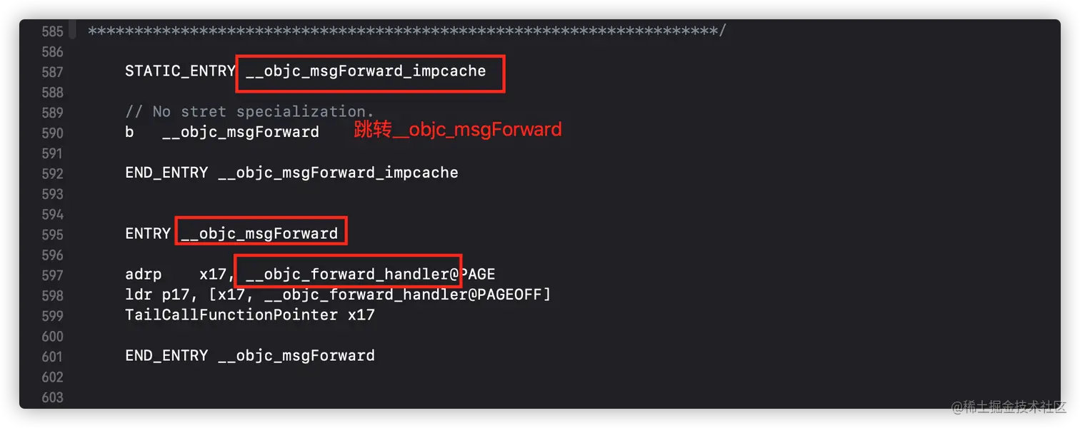那么该段代码的含义就是,当根据类及其父类直到根类,都没有找到方法时,objc_msgSend