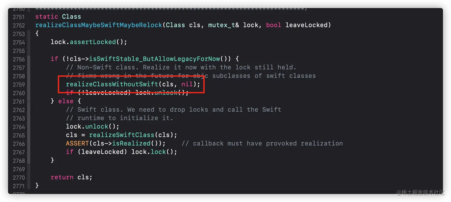 cls = realizeClassMaybeSwiftAndLeaveLocked(cls, runtimeLock);