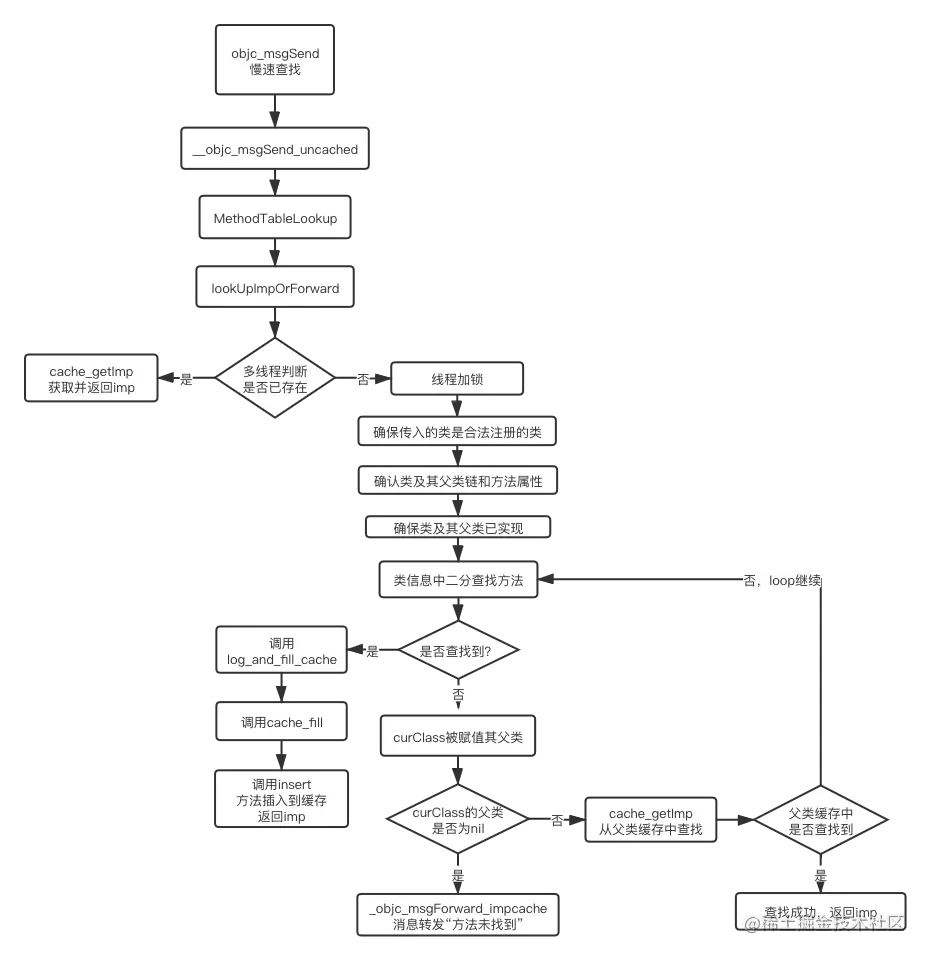 ,从父类的类信息中进行慢速查找,直到找到跳出循环,或者找到根类的父类nil