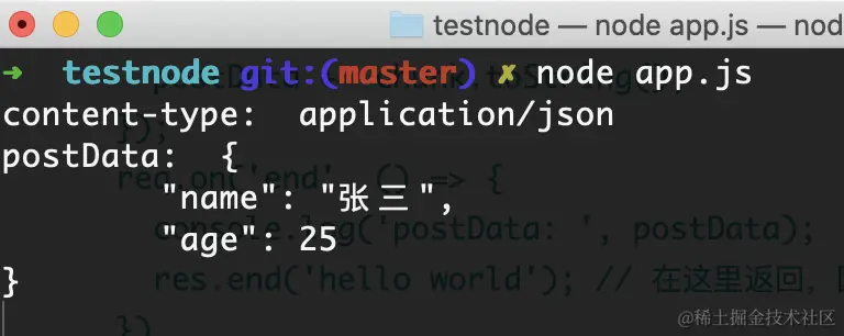 - 定义一个postData存放post请求中不断传入的数据,若干次触发on中的data,结束触发end,一直监听数据流传入