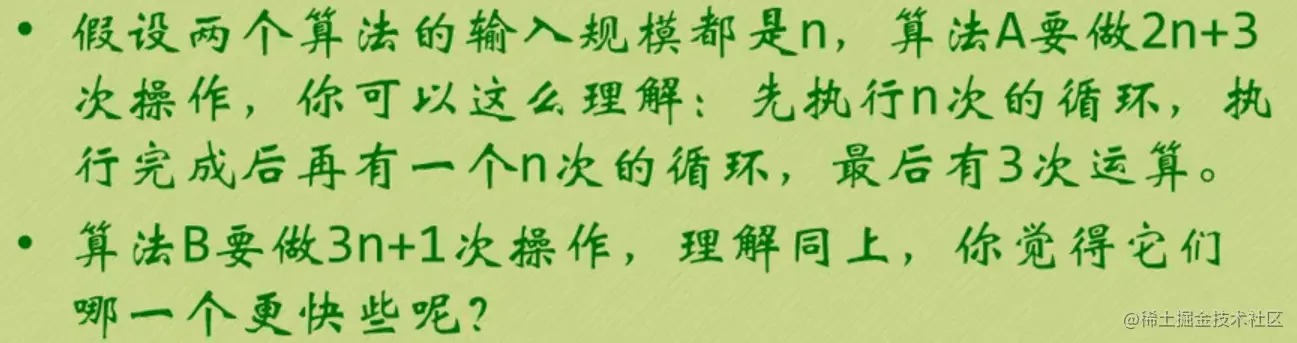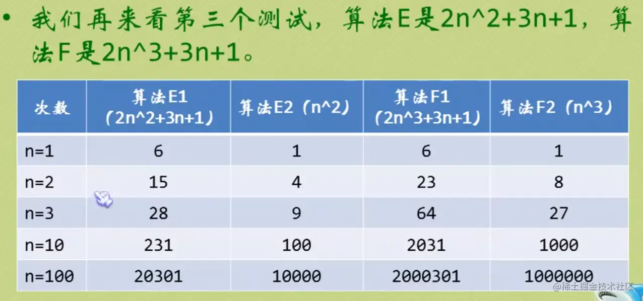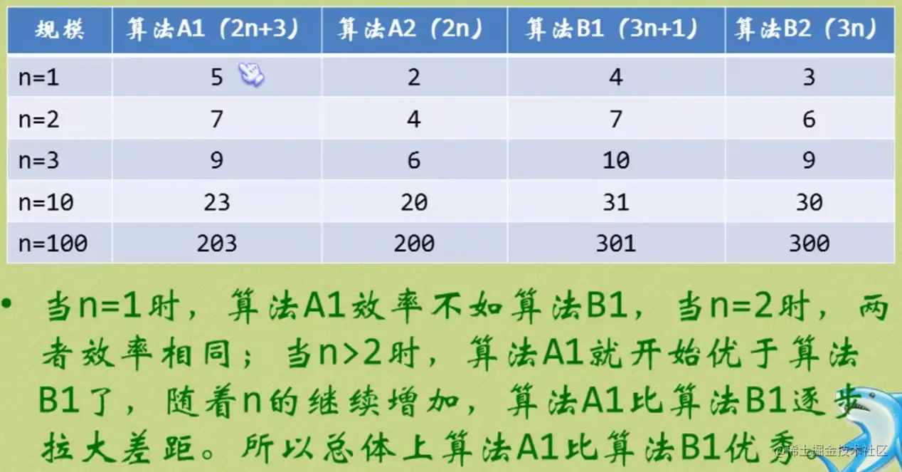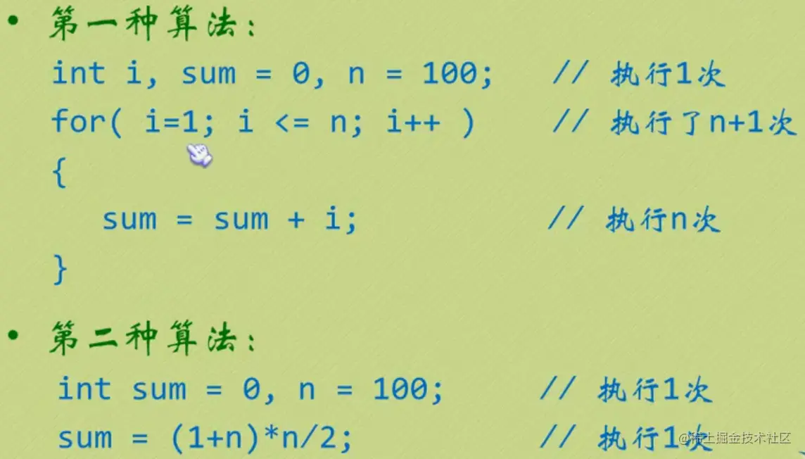 - 第一种算法执行了 1+(n+1)+n=2n+2 次