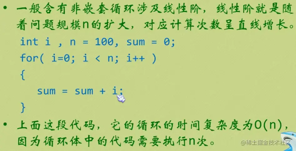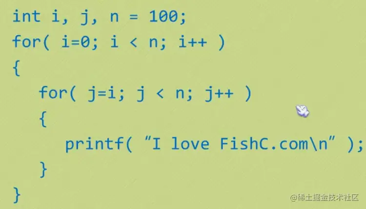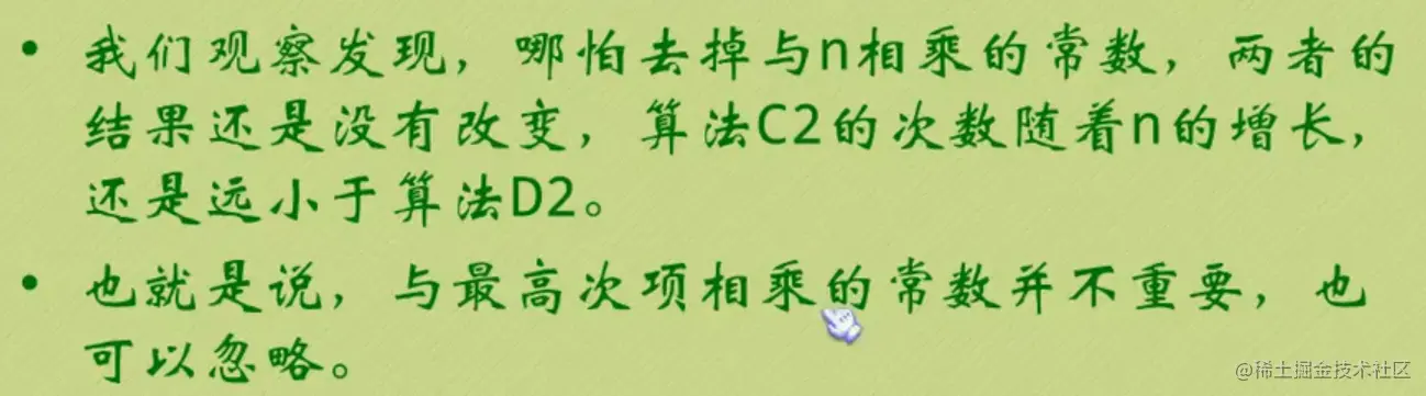 - 如果将循环看做一个整体,忽略头尾的开销,两个算法的差距是 n 和 1 的差距