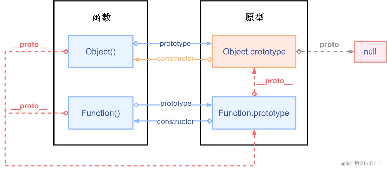 //原型链:Object() ---> Function.prototype ---> Object.prototype ---> null
