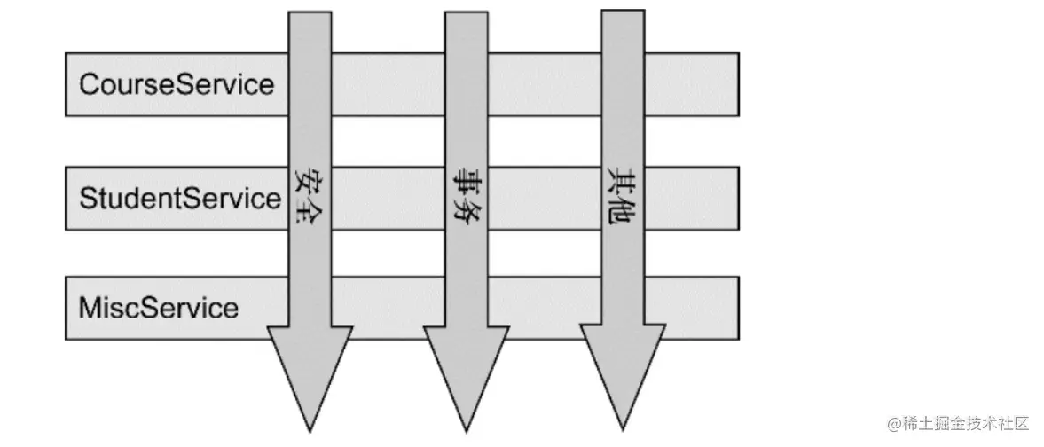AOP(Aspect Orient Programming),翻译过来就是面向切面编程,面向对象编程是将程序抽象成多个层次的对象,面向切面是将程序抽象成多个切面