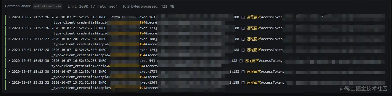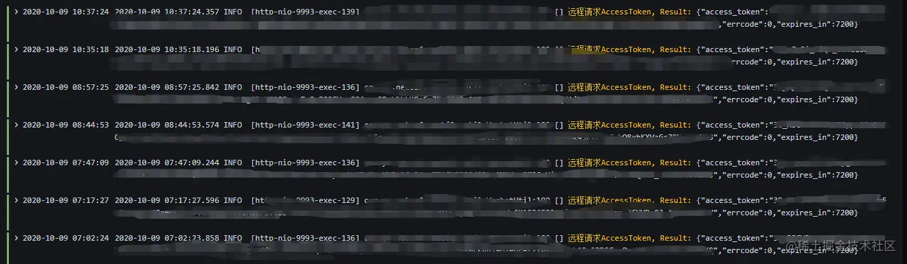 继续观察,出现上图的log,发现获取token的频率并不在 6000 秒左右,有的十几分钟就发生了重新获取的情况,看到这里莫非我们的redis出现了问题?或者在别的地方有人手动删除了redis或者代码里有别的地方将token删除?