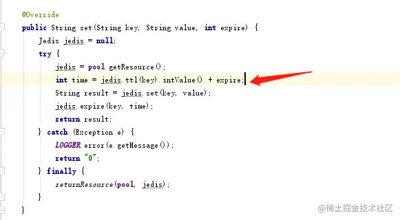 最终仔细一看它的实现代码。。 int time = jedis.ttl(key).intValue() + expire; , 这个框架set一个值的时候,先获取它之前的有效时间,并和现在的进行相加。。。
