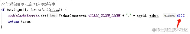 首先根据代码层面的观察,获取到token之后,存储的是6000秒,而微信官方文档描述的是,返回的accessToken有效期在7200秒,所以系统缓存中的token一般来说肯定会在微信系统失效前进行失效,但是为什么会发生token在本系统中失效的情况呢。