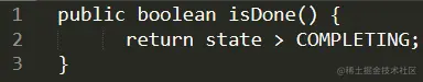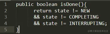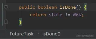 他觉得从源码来看,是只要当前状态不等于 NEW(即不等于0)则返回 true,表示任务完成。