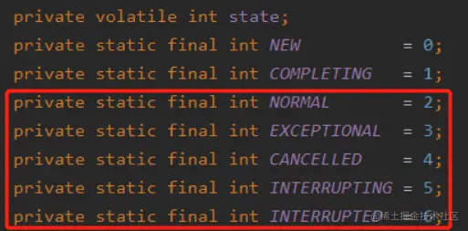 这样写的目的是除了判断了 NEW 状态之外,还判断了两个中间状态:COMPLETING 和 INTERRUPTING。