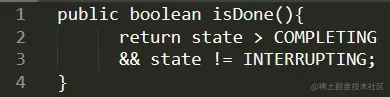 按照这个逻辑,那么判断任务是否完成(isDone)的时候,也不需要对 INTERRUPING 这个中间状态做特殊处理。