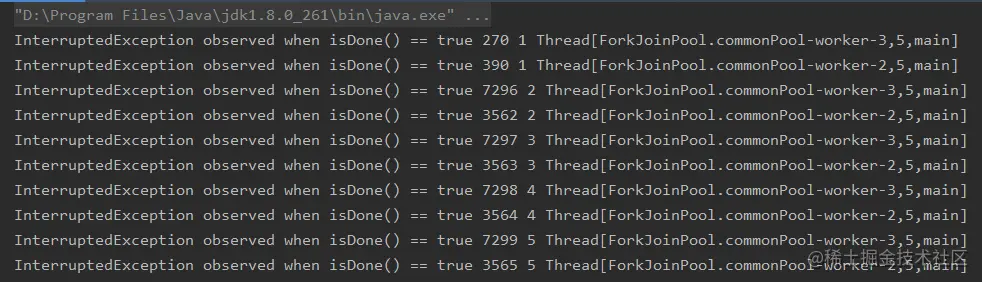 但是,在这个场景中,当前线程中断了,但并不能表示 Future 里面的 task 任务的完成情况。这是两个不相关的事情。