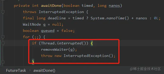 我们还是得对其进行了一个优先检查,告知程序当前线程是否发生了中断,即是否有继续往下执行的意义。