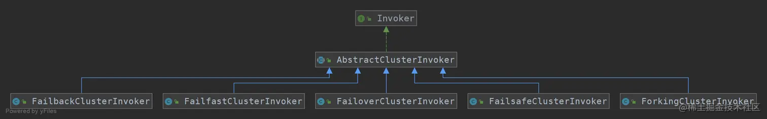 使用的模板方法设计模式,可以看到一些主流程都在父类的AbstractClusterInvoker中,一些特殊实现如doXxx(比如doList、doInvoke)根据配置的不同子类,或者根据SPI定制化实现。
