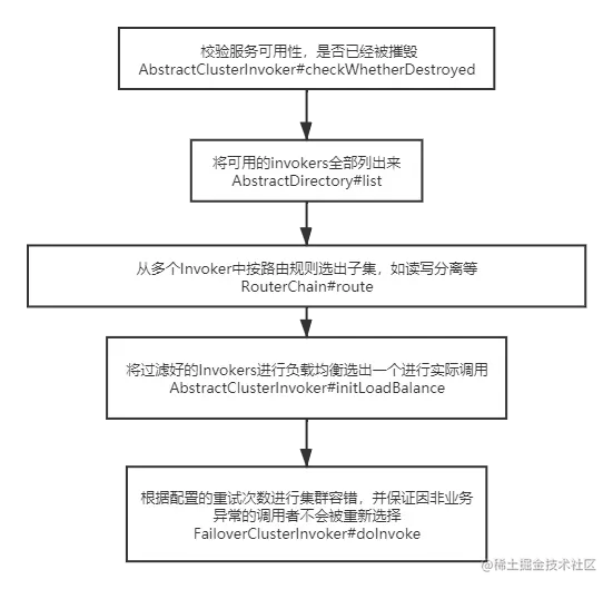 FailoverClusterInvoker#doInvoke也就是父类最后一步的具体调用实现。