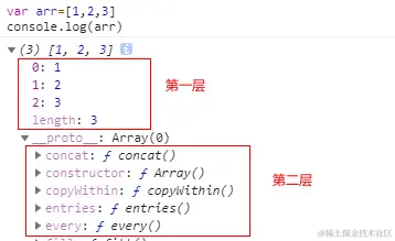 - 数组的第一层是数组内容,第二层是Array.prototype,第三层是Object.prototype
