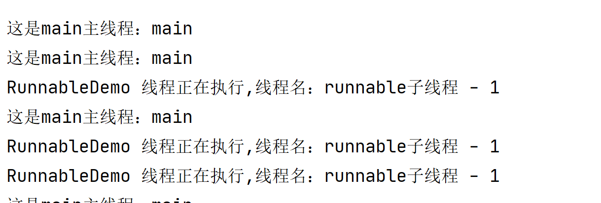System.out.println("RunnableDemo 线程正在执行,线程名:"+ Thread.currentThread().getName());