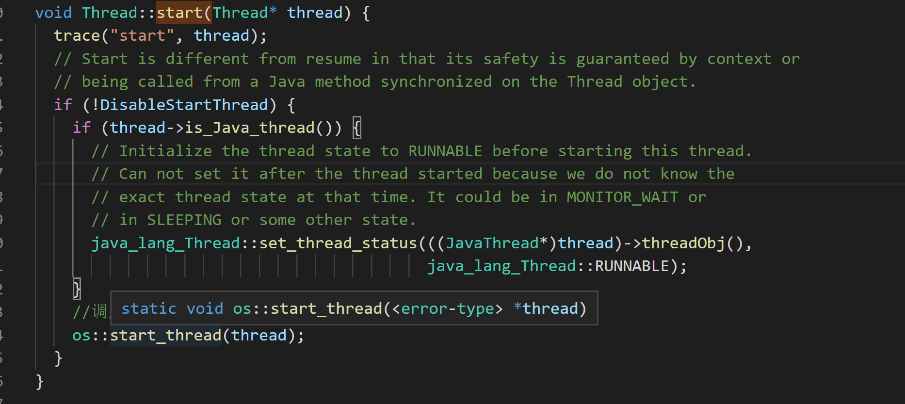 Thread::start(native_thread);在 JVM_StartThread 中调用,该方法的实现在Thread.cpp中