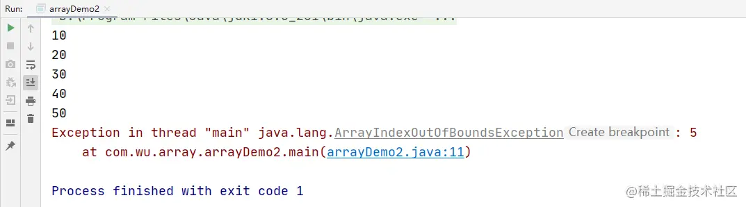 - ArrayIndexOutOfBoundsException:数组下标越界异常