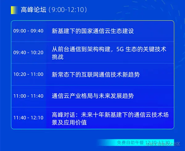 WICC 主论坛中“新基建下的国家通信云生态建设”、“从前台通信到架构构建,5G 生态的关键技术挑战”、“通信云产业格局与未来发展趋势”等内容,将从国家战略及行业发展高度出发,邀请信通院专家、华为技术领袖、产业投资人分别站在不同角度,深层次解析通信云技术在支撑 5G、新基建演进中的重要作用。