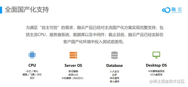 科技兴邦责无旁贷,在坚持国产化自强不息的道路上,华为如此,融云亦是如此。融云自有研发的通信云技术已可全面支持国产主流厂商,在积极响应国家层面的推进国产替代方案的要求上,融云将为开发者们带来更多前瞻性思考和宝贵地实践。