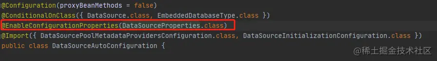 @EnableConfigurationProperties(DataSourceProperties.class) //读取yml配置文件中的属性到DataSourceProperties中