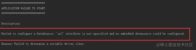 看报错中框出来的部分——数据源没有指定url。可是这时候仅仅是新建的项目,还没有到配置数据库这一步。