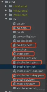 最后会生成根证书、etcd启动时需要的服务端证书和etcdctl交互时需要的客户端证书: