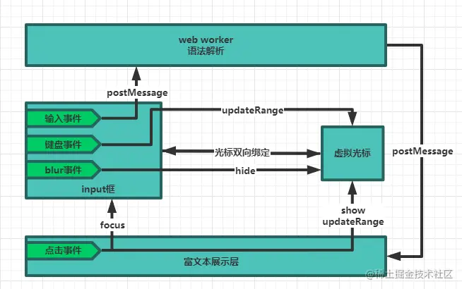 - 采用web worker多线程,在多线程里面将用户的输入解析成语法树。可以避免解析时阻塞主线程,导致输入时出现卡顿感。