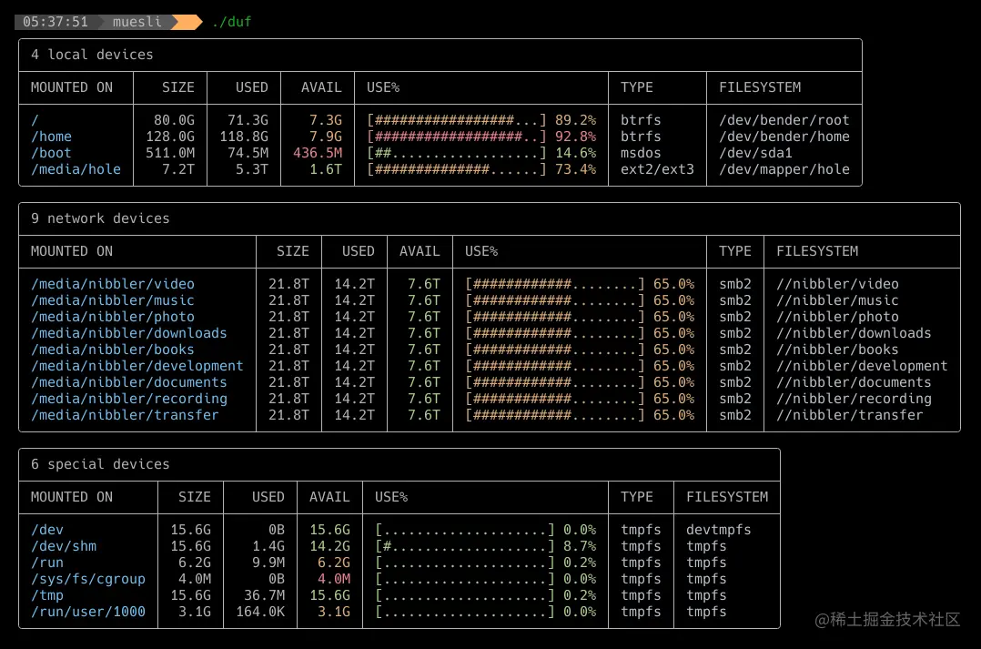 GitHub 地址→github.com/muesli/duf
