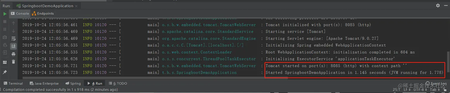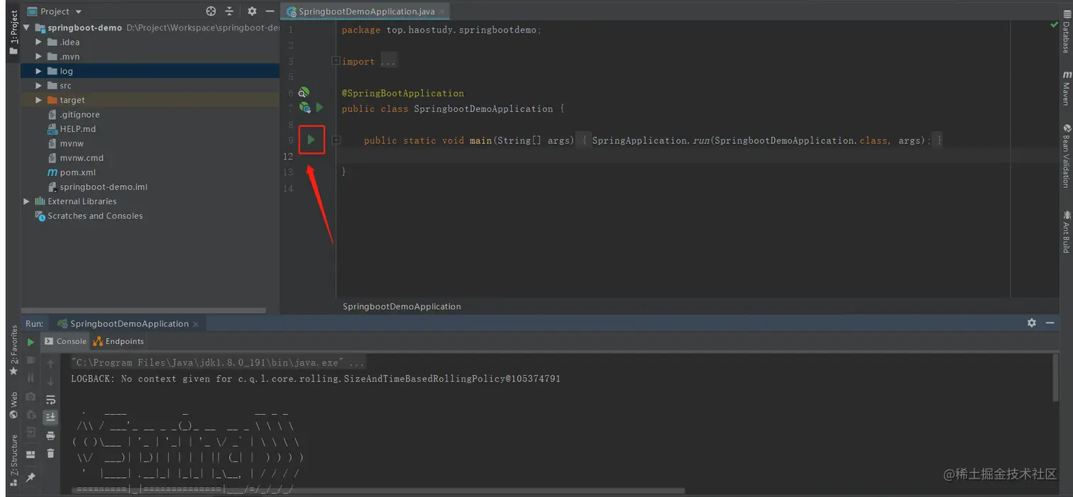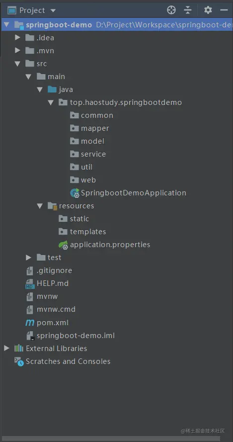 8、SpringbootDemoApplication:项目的启动类,里面包含了一个main函数,启动项目就是执行main函数。