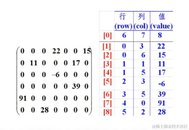 - 把具有不同值的元素和行列及值记录在一个小规模的数组中,从而缩小程序的规模