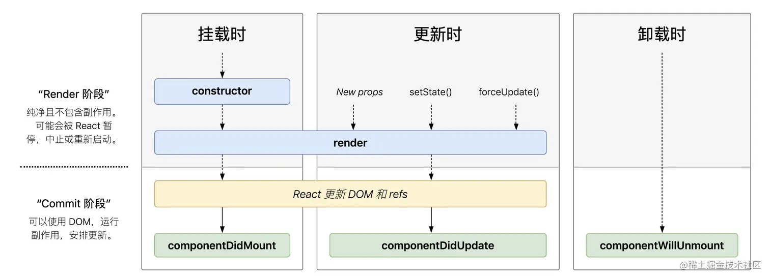 render() :挂载时用来渲染内容的方法,每个类组件都需要一个 render 方法;