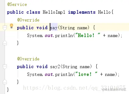 可以看出,在HelloImpl 类中由于say()没有调用say2(),他们方法的执行都是使用了代理的,也就是说say和say2都是通过代理对象调用的invoke()方法,这和我们场景A和场景B类似。
